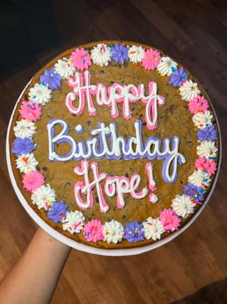 Our cookie cakes are made fresh and decorated fresh. A 24-hour notice is required to order.