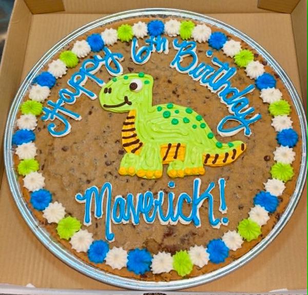 Our cookie cakes are made fresh and decorated fresh. A 24-hour notice is required to order.