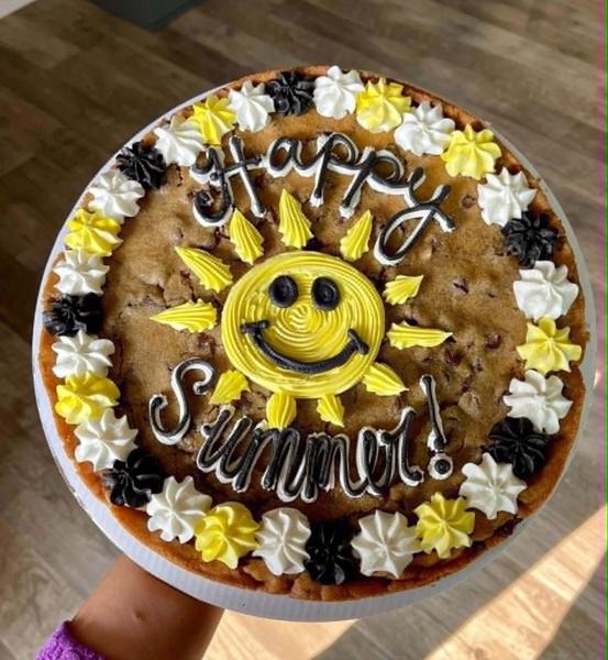 Our cookie cakes are made fresh and decorated fresh. A 24-hour notice is required to order.