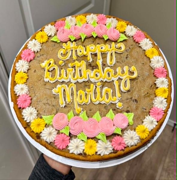 Our cookie cakes are made fresh and decorated fresh. A 24-hour notice is required to order.