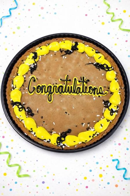 Our cookie cakes are made fresh and decorated fresh. A 24-hour notice is required to order.