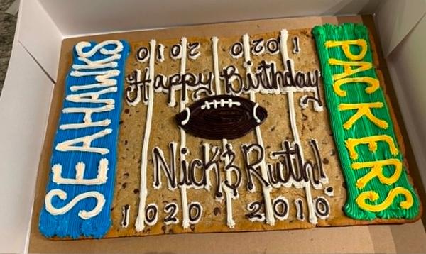 Our cookie cakes are made fresh and decorated fresh. A 24-hour notice is required to order.
