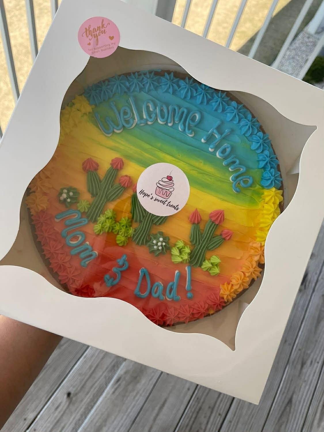 "As delicious as it looked, thanks for creating such a special welcome home treat!! Outstanding!!"