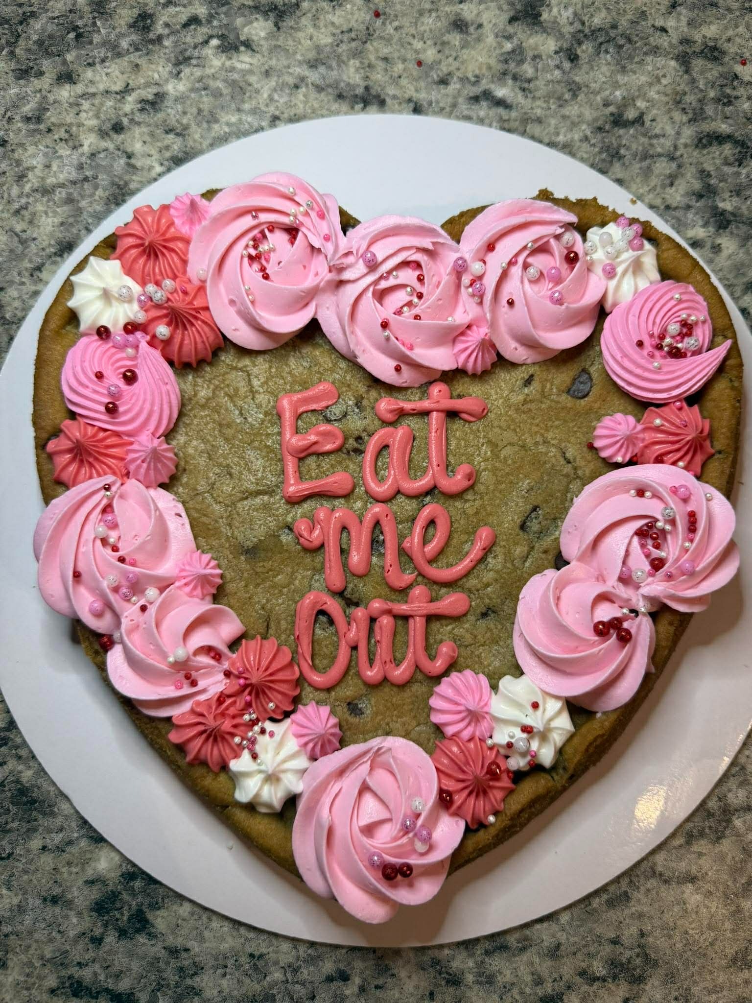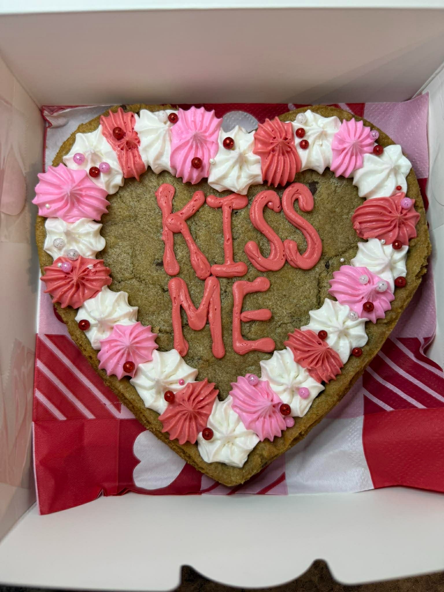 "Yall it's mind blowing how amazing Hope's Sweet Treats is! Not only is this cookie cake absolutely adorable but it's SOOOO delicious! I got it to surprise my hubby for Valentine's Day and he couldn't wait to try it! He said it's the best cookie cake he's ever had!